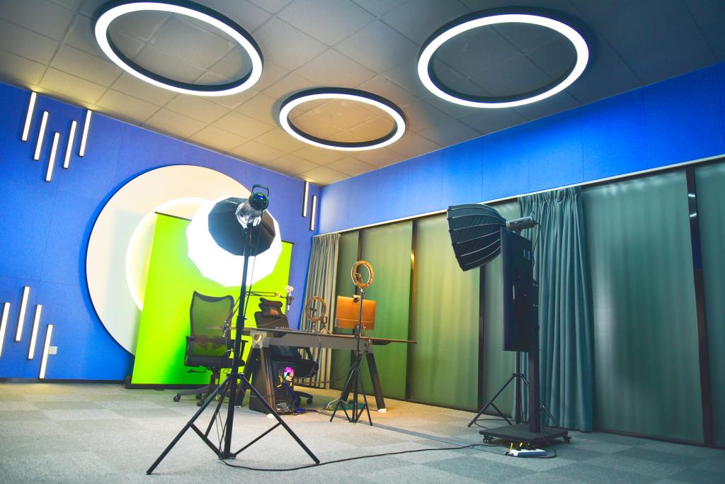 新媒体示范基地划分为4个功能区,分别是实践教学区、直播区、名师工作区及观摩区。其中,实践教学区重点承担短视频营销、新媒体运营、网络直播技术等新媒体核心课程的理论教学和仿真实践训练任务;直播区重点承担仿真企业直播环境下的源自企业项目的直播训练任务;名师工作区重点承担企业名师和学生共同参与的企业项目开发任务;观摩区重点承担学生现场观摩学习经验丰富的企业专家的亲身实战教学及基地人才培养优秀成果展示的任务。各功能区即相互独立,又相互支撑,共同实现从理论教学、实践训练到名师指导、岗位训练的新媒体人才全流程培养。